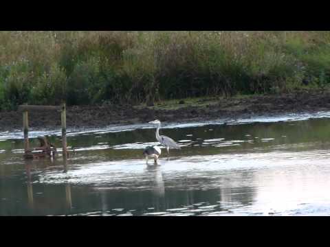 Hier im Video sieht man Luise, ein wenig auf Krawall gebürstet, mit einem Reiher zanken und kann sie bei der Suche nach Fischen beobachten